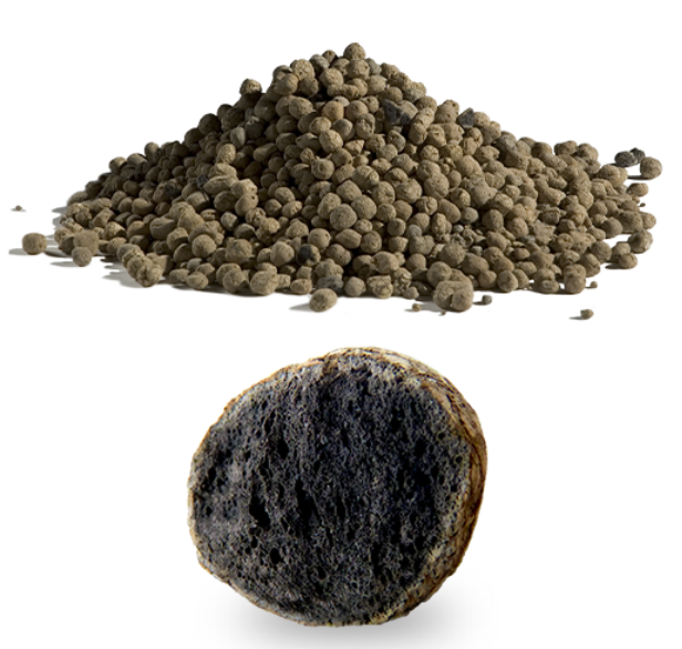 Les billes séchées sont ensuite introduites dans un four rotatif incliné, qui tourne lentement sur lui-même. En avançant progressivement dans le four, elles traversent différentes zones de température jusqu’à atteindre environ 1200 °C. C’est à ce moment que se produit le phénomène clé : sous l’effet de la chaleur, les matières organiques et certains composés minéraux contenus dans l’argile se décomposent et libèrent des gaz. Simultanément, la surface des billes se ramollit et devient partiellement visqueuse. Les gaz produits à l’intérieur ne peuvent pas s’échapper facilement et provoquent alors une expansion des billes, un peu comme un matériau qui “gonfle”. Cette expansion crée une structure interne très poreuse, tandis que l’enveloppe extérieure se vitrifie et devient dure.